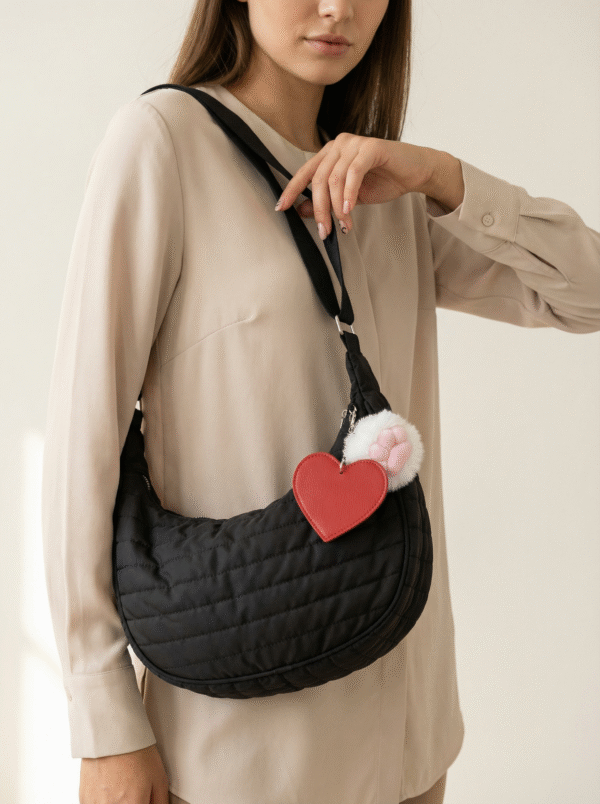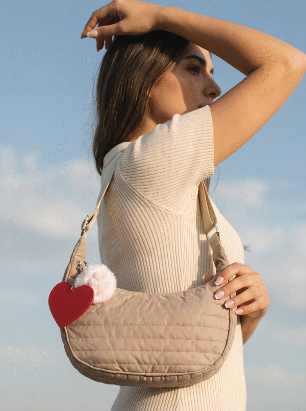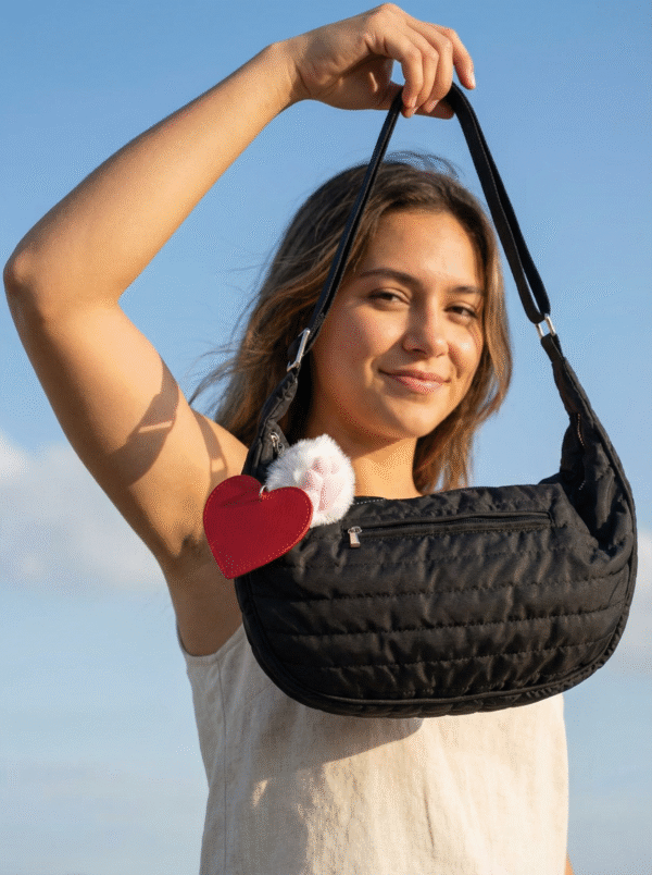 La Bestie Bag está hecha en tela suave y acolchada, perfecta para estar cómoda y con estilo. Puedes usarla terciada o al hombro, ideal para el día a día.