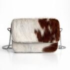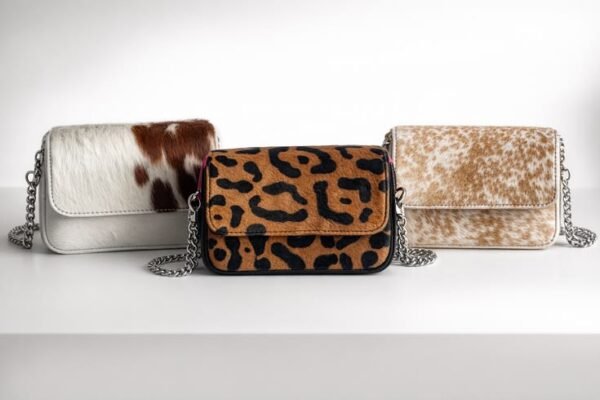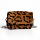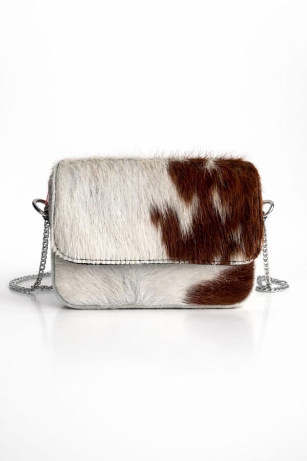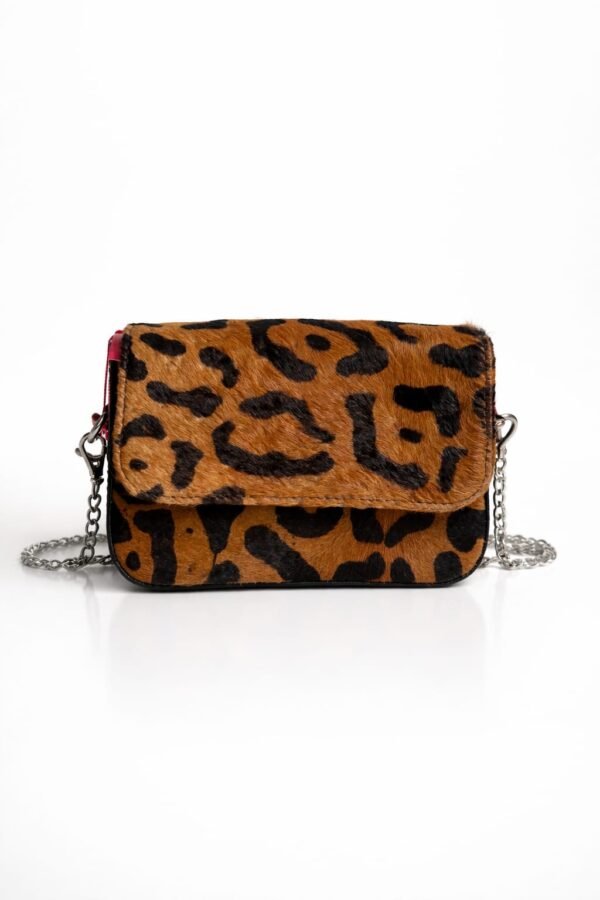 Nuestro Pequeño Salvaje está hecho en cuero con pelo natural, suavecito, lleno de textura y con esas pintas hermosas que lo hacen imposible de ignorar. Es de esos accesorios que elevan TODO tu outfit sin esfuerzo.